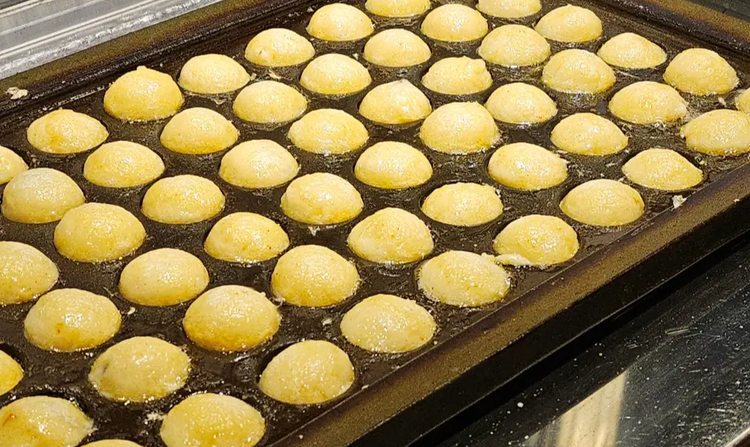 노릇노릇 익고있는 타코야끼... 반질반질 먹음직스럽다.