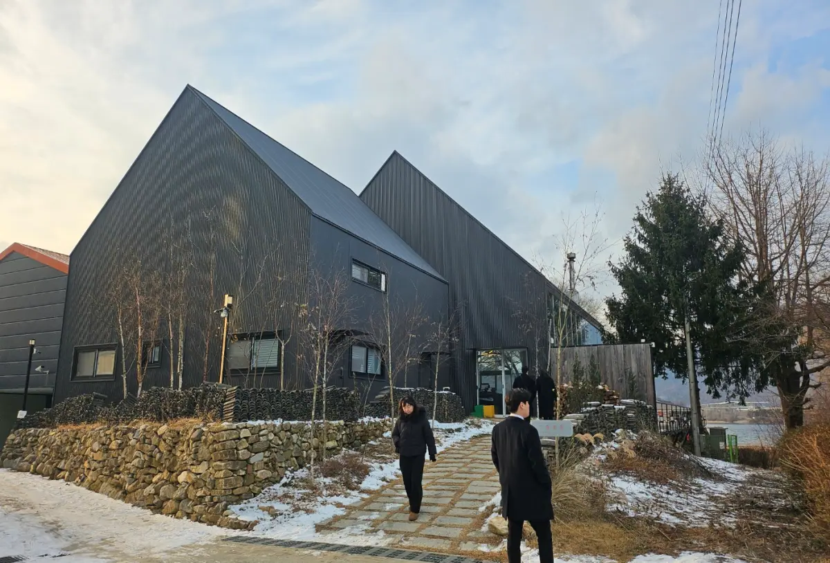 크리스마스를 기념해서 바람을 쐬러 나가기로 했다. 양평가는 드라이브 중에도 풍경이 참 좋았는데 수묵화 같은 산과 강으로 둘러싼 고속도로를 지나 우리 목적지는 그림정원이라는 양평의 카페였다. 구리에서 출발해서 차로 20분정도 가니까 도착했다. 밥을먹고 와서 소화를 시킬겸 조금 걷고 들어가기로 했다. 카페 안에는 꽃다발 가진 연인, 담소를 나누는 모임 인원등 다양한 사람들이 있었다.
