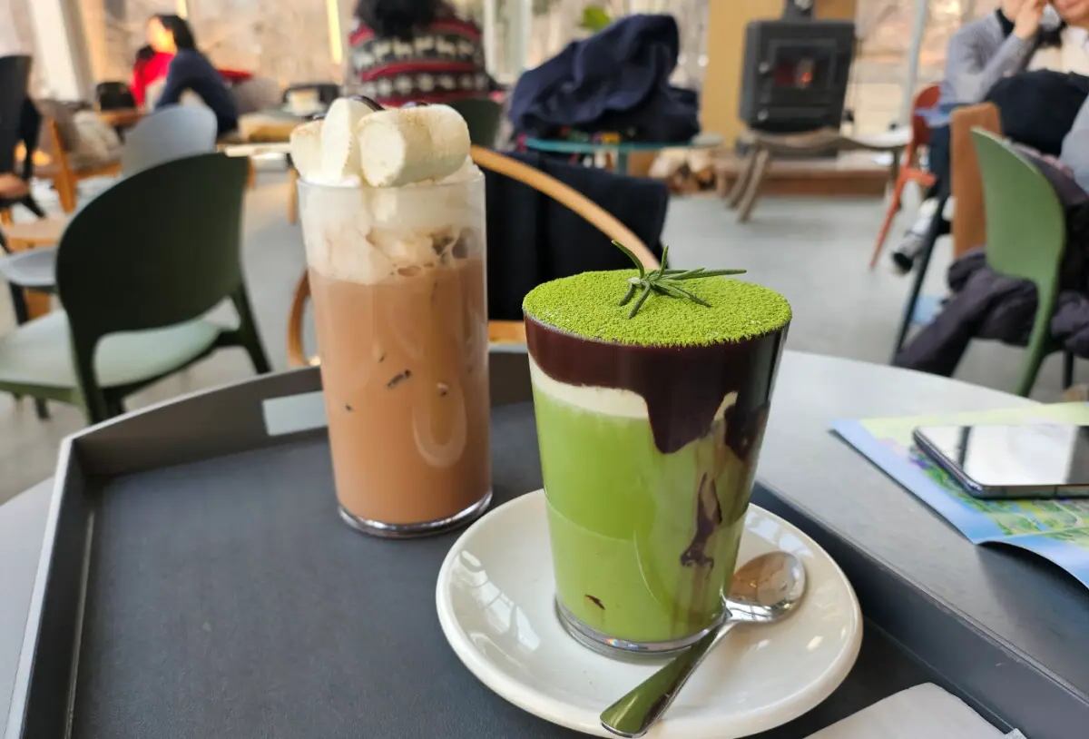 까먹어서 결국 카카오맵에서 퍼온 메뉴판. 비싼편이긴 한데 풍경을 한동안 감상하다보면 카페입장권.풍경감상권으로 그냥 넘어갈 수 있다. 또 음료 비쥬얼,재료도 나름 신경 쓴 듯하다. 초콜릿 캠프랑 제주 말차 초코라떼를 마셨는데 초콜릿 캠프는 마시멜로우가 올라간 진한초콜릿 우유, 한입 마시고 살짝 구워진 마시멜로우를 베어먹으니 부드럽고 아주 달달했다. 제주 말차 초코라떼는 향이 말차향이 가득해서 밭에 온 느낌이었다. 비주얼이 훌륭했는데 초콜릿은 약간 이용당한 느낌으로 크게 존재감은 없었다. 초코망토를 두른느낌.? 초코나무 숲이라고 생각하고 시키면 약간 실망할 수도 있겠다. 나는 말차 특유의 씁쓸한 맛이 잘 느껴져서 좋았다.