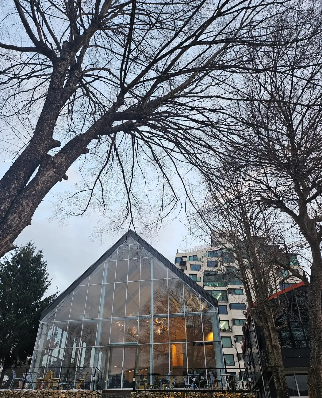 카페전경- 나뭇가지가 하늘에 펼쳐져서 멋진 사진이 나왔다 .
