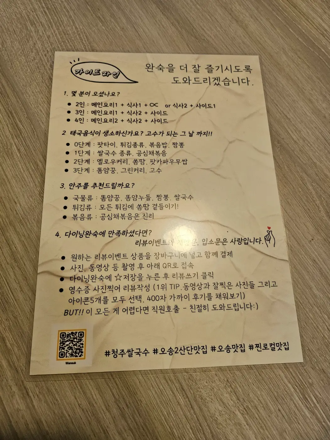 가이드라인이 있어 처음방문하는 사람은 메뉴를 고르는데 도움이 될 듯하다.